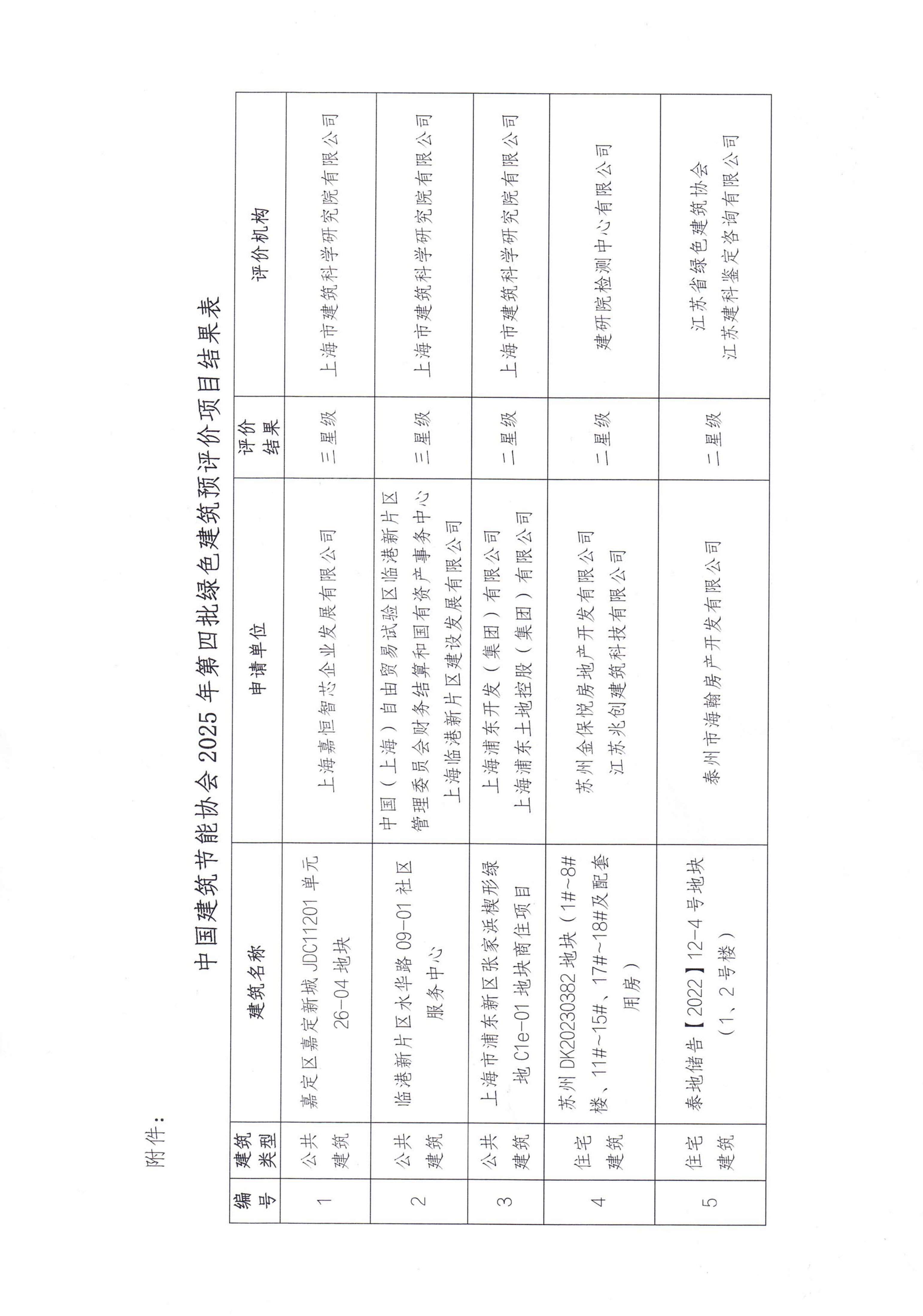 附件:《中国建筑节能协会2025年第四批绿色建筑预评价项目结果表》